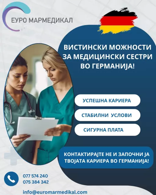 Не двоумете се, започнете ја вашата кариера во Германија со ЕУРО МАРМЕДИКАЛ и уверете се дека сте во сигурни раце!