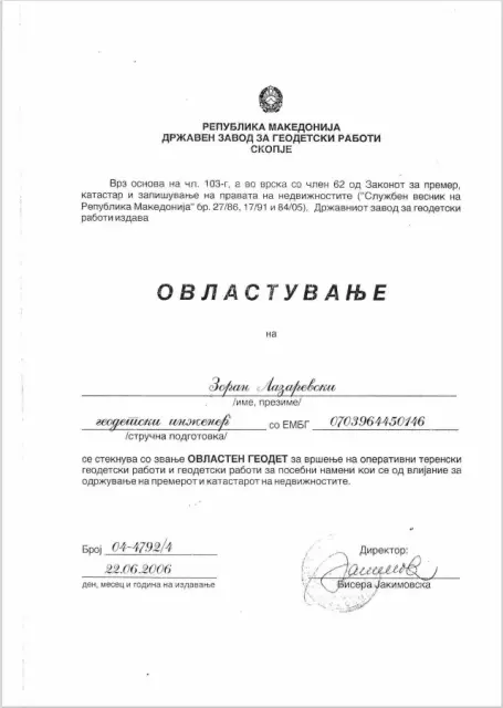 Долгогодишно искуство во геодетски и катастарски услуги Скопје