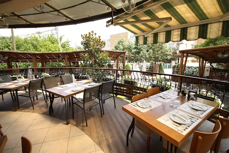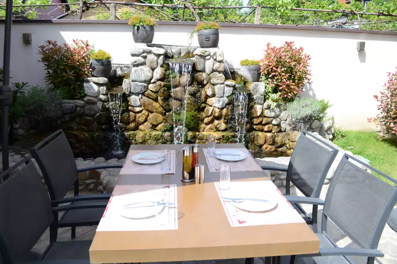 Фиш ресторан поседува голема тераса и простран двор со фонтана, декорирани со преубава хотрикултура и претставува прекрасно место за уживање на највкусна морска храна.