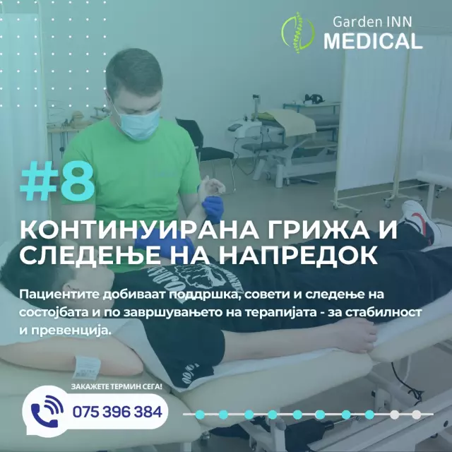 Доколку барате приватна ординација за рехабилитација со професионален и хуман пристап, ГАРДЕН ИНН МЕДИКАЛ е вашиот сигурен партнер во процесот на закрепнување. Нашата работа се темели на доверба, стручност и индивидуална грижа за секој пациент.