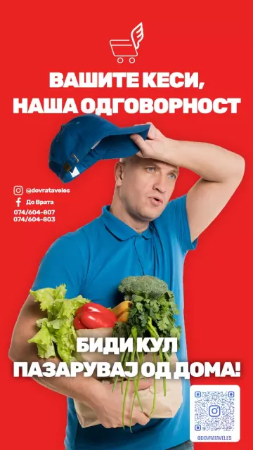 Vo momentite koga ste gladni, a vremeto ne vi dozvoluva da izlezete – nie sme tuka za vas! DO VRATA e idealno reshenie za site shto baraat brza i sigurna dostava na hrana vo Veles. So koristene na elektrichni motori, ja donesuvame vashata omilena hrana, proizvodi i drugi artikli direktno do vashata vrata, bez nikakvi komplikacii. Bez cekanje, bez nervozi, samo povik i – hranata e na pat kon vas.