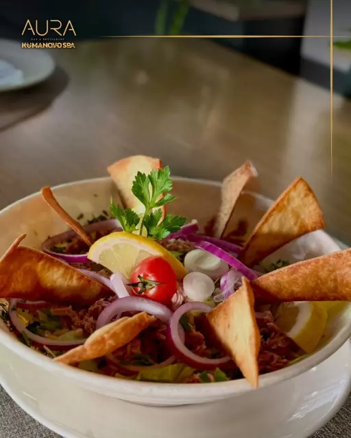 Vo Najdobriot restoran so spa centar Kumanovo – AURA sekoi obrok pretstavuva umetničko doživuvanje. Našite vrvni gotvači se grizat da sozdadat meni koe kombiniра tradicionalni recepti so sovremeni gastronomски trendovi. Od sveži predjadenja i sočni specijaliteti na skara, do internacionalni jadenja i gurmanski deserti – se e podgotveno so najvisok kvalitet i ljubov kon hranata.